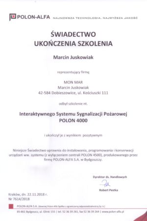 "Pan Marcin Juskowiak, firma Mon-Mar, ul. Kościuszki 111, 42-584 Dobieszowice, dał się poznać jako bardzo dobry organizator pracy własnej. Z nałożonych zadań wywiązuję się sumiennie, sprawnie i terminowo. Wyróżnia się umiejętnością podejmowania szybkich i trafnych decyzji. Ponad to Pan Marcin cechuje się, dobra komunikacją ze zelceniodawcą, oraz elastycznością godzin pracy. "
